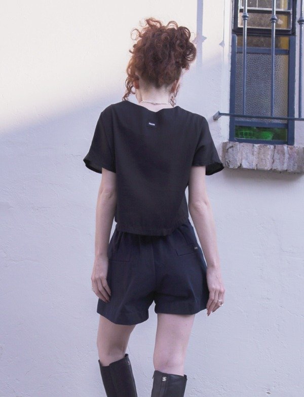 camisa NUDO confeccionada en poplin de algodón 100%, con botones y tiras para anudar a la cintura. Muy fresca y cómoda para usar de día, de noche, para ir a trabajar o para cualquier encuentro.